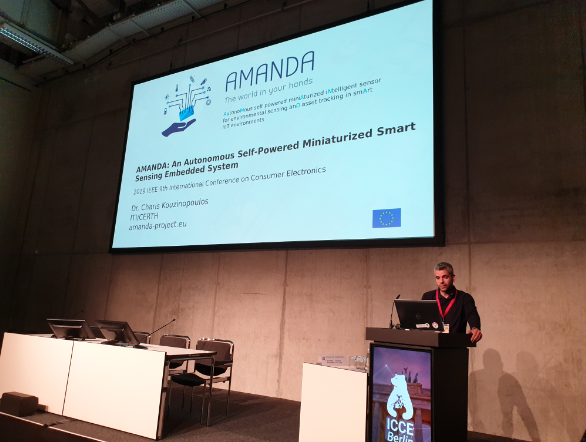 Dr. Charis Kouzinopoulos was presenting the AMANDA project at the IEEE ICCE conference, hosted as part of IFA Berlin, the world's leading trade show for consumer electronics and home appliances. The title of Dr. Charis Kouzinopoulos presentation was "An Autonomous Self-Powered Miniaturized Smart Sensing Embedded System"(https://edas.info/p25749). The complete document is free to download at the link.